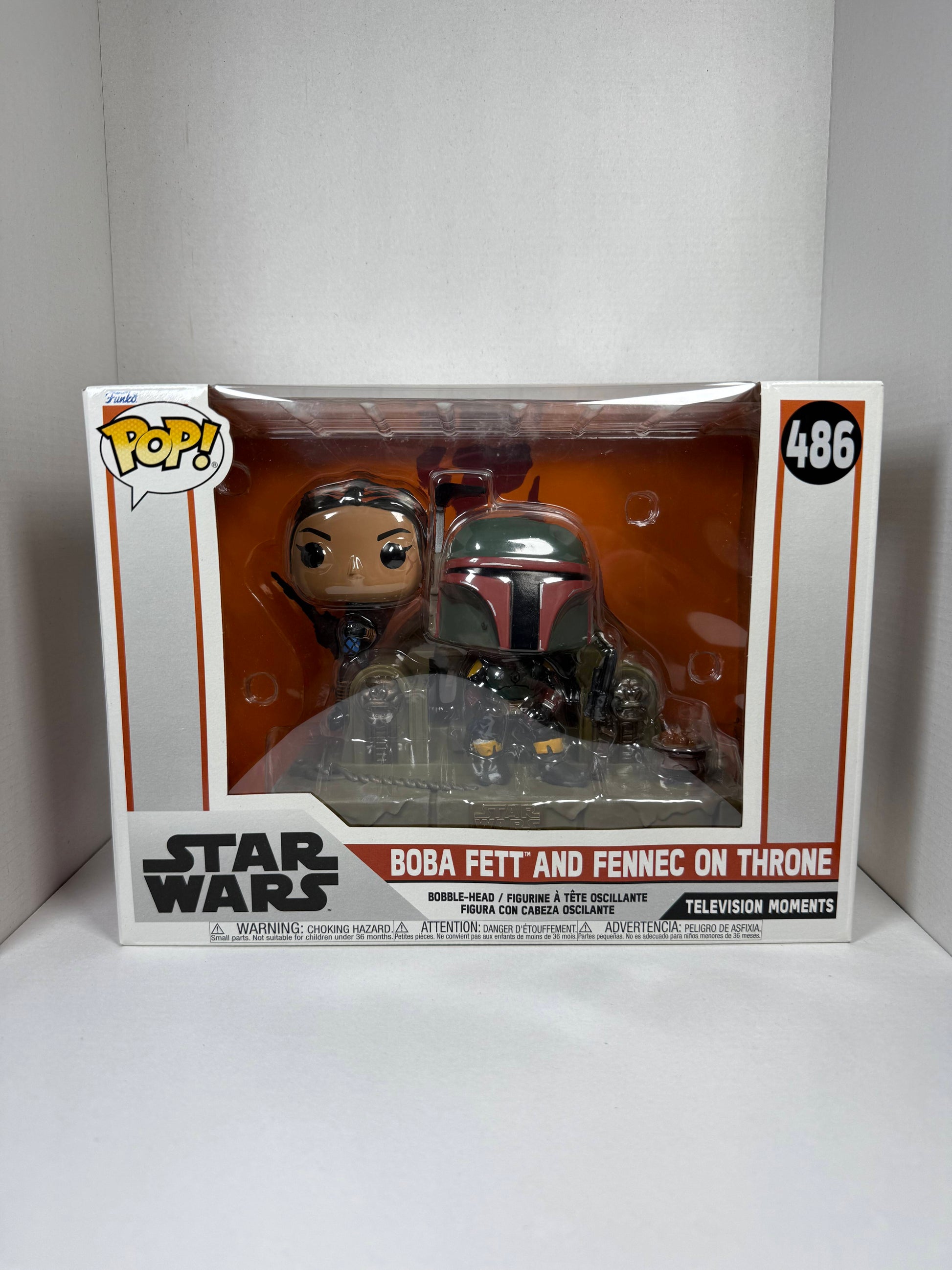 Celebrate The Book of Boba Fett with this dynamic Funko Pop featuring Boba Fett and Fennec Shand together.