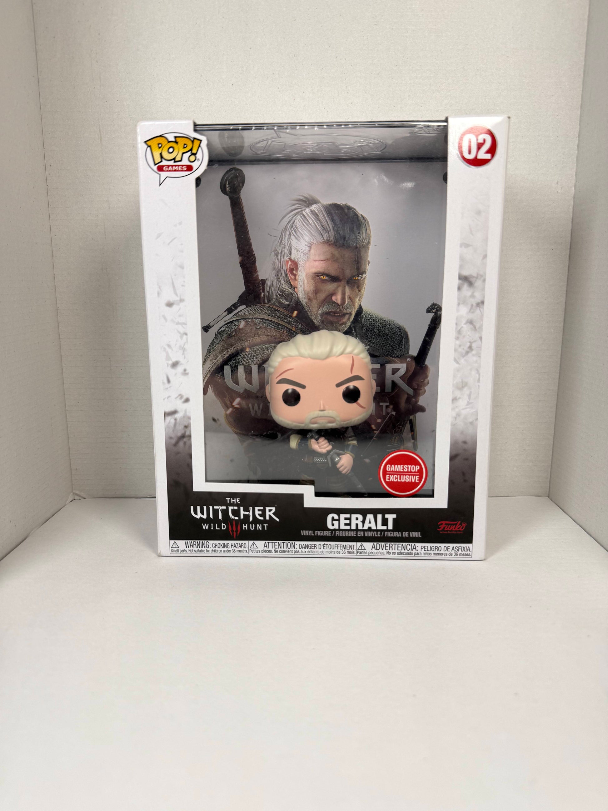 From The Witcher, Funko Pop Geralt showcases the monster slayer in full battle mode.