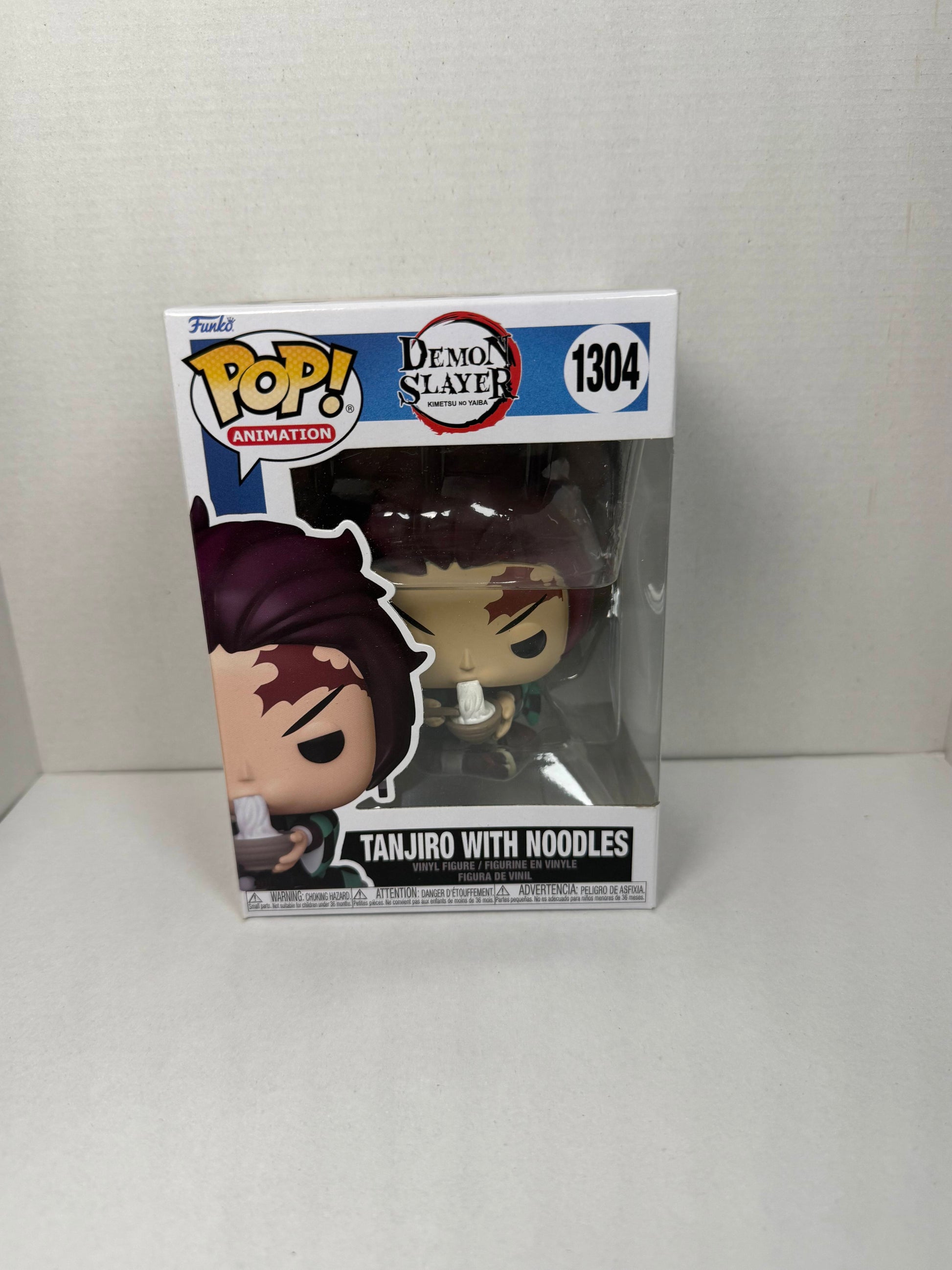 From Demon Slayer, Funko Pop Tanjiro enjoys a peaceful moment with noodles.